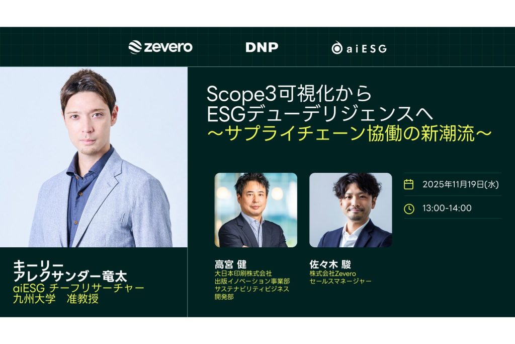 aiESGのチーフリサーチャーで九州大学准教授のキーリーが、Zevero社・DNP社共催のイScope3可視化からESGデューデリジェンスへ 」に登壇します